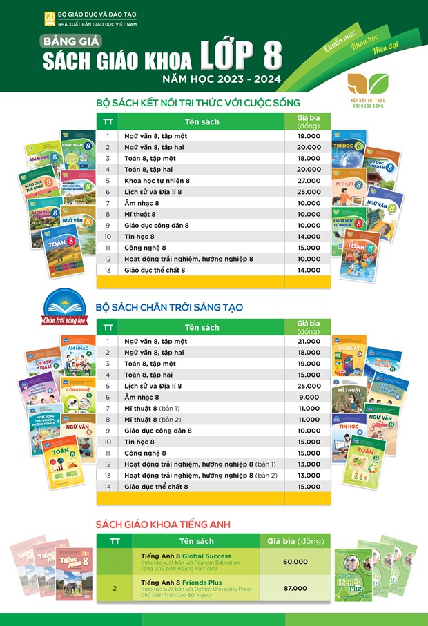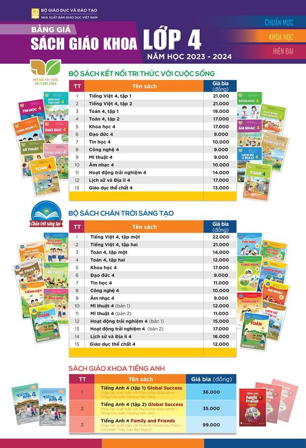 Nhà xuất bản Giáo dục Việt Nam vừa công bố giá sách giáo khoa mới các lớp 4, 8, 11.