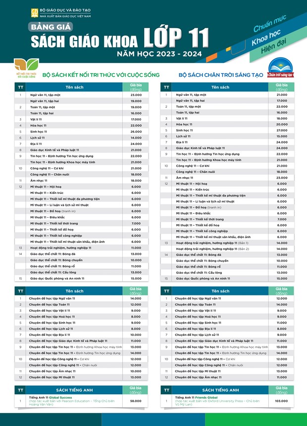 Sách giáo khoa lớp 11 mỗi bộ đều gồm 25 đầu sách