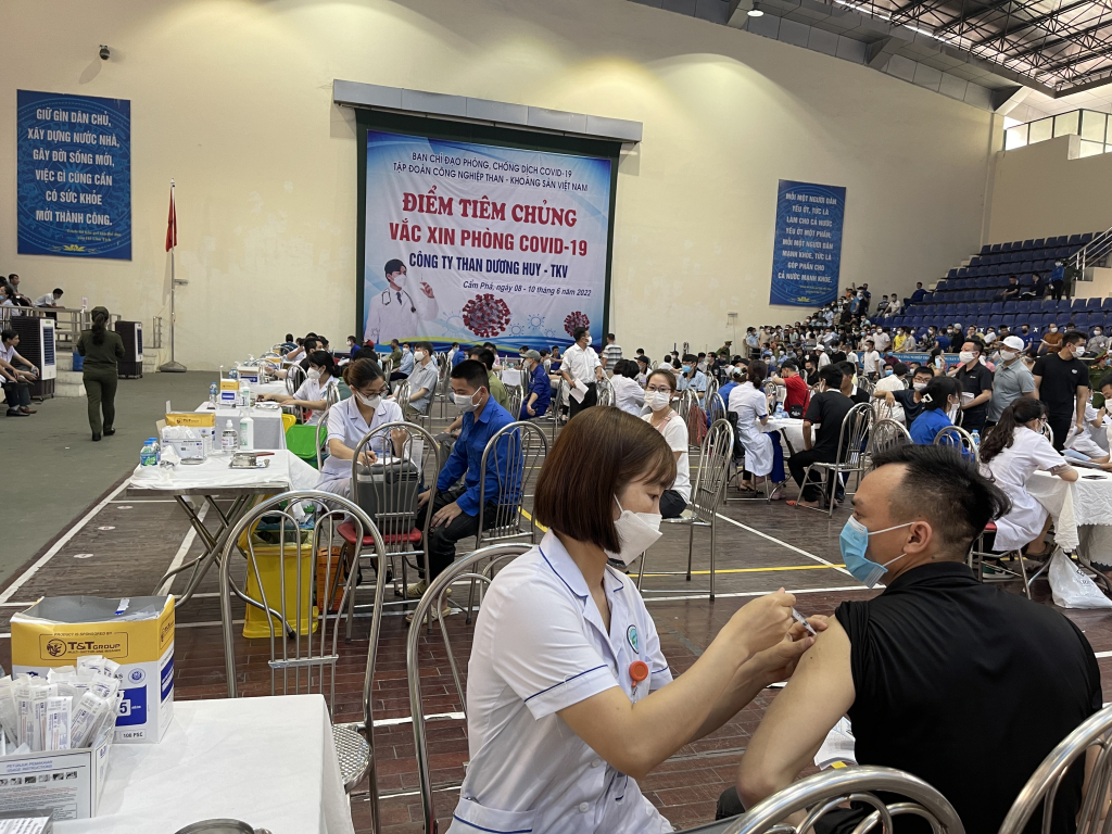 Tiêm vắc-xin mũi 4 cho công nhân Công ty Than Dương Huy.