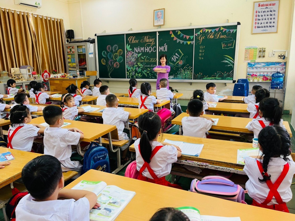 Cô và trò Trường Tiểu học Hà Lầm (TP Hạ Long) học nền nếp đầu năm học.