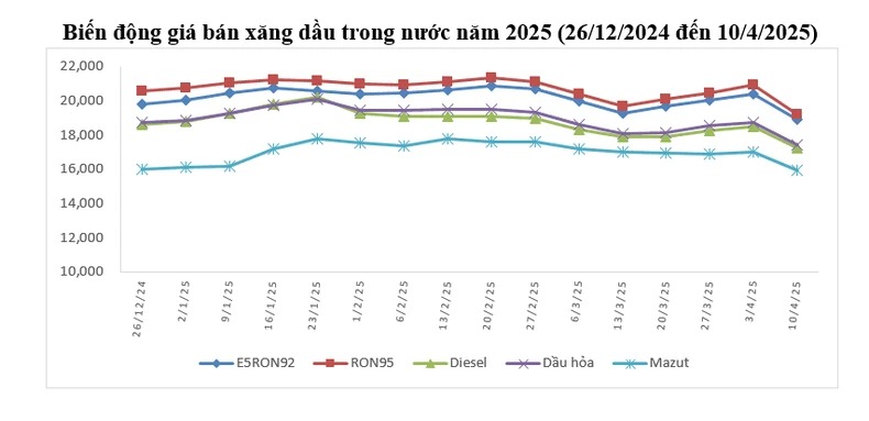 Việc điều chỉnh giá bán các mặt hàng xăng dầu do thương nhân đầu mối kinh doanh xăng dầu, thương nhân phân phối xăng dầu quy định nhưng không muộn hơn 15 giờ ngày hôm nay 10/4.