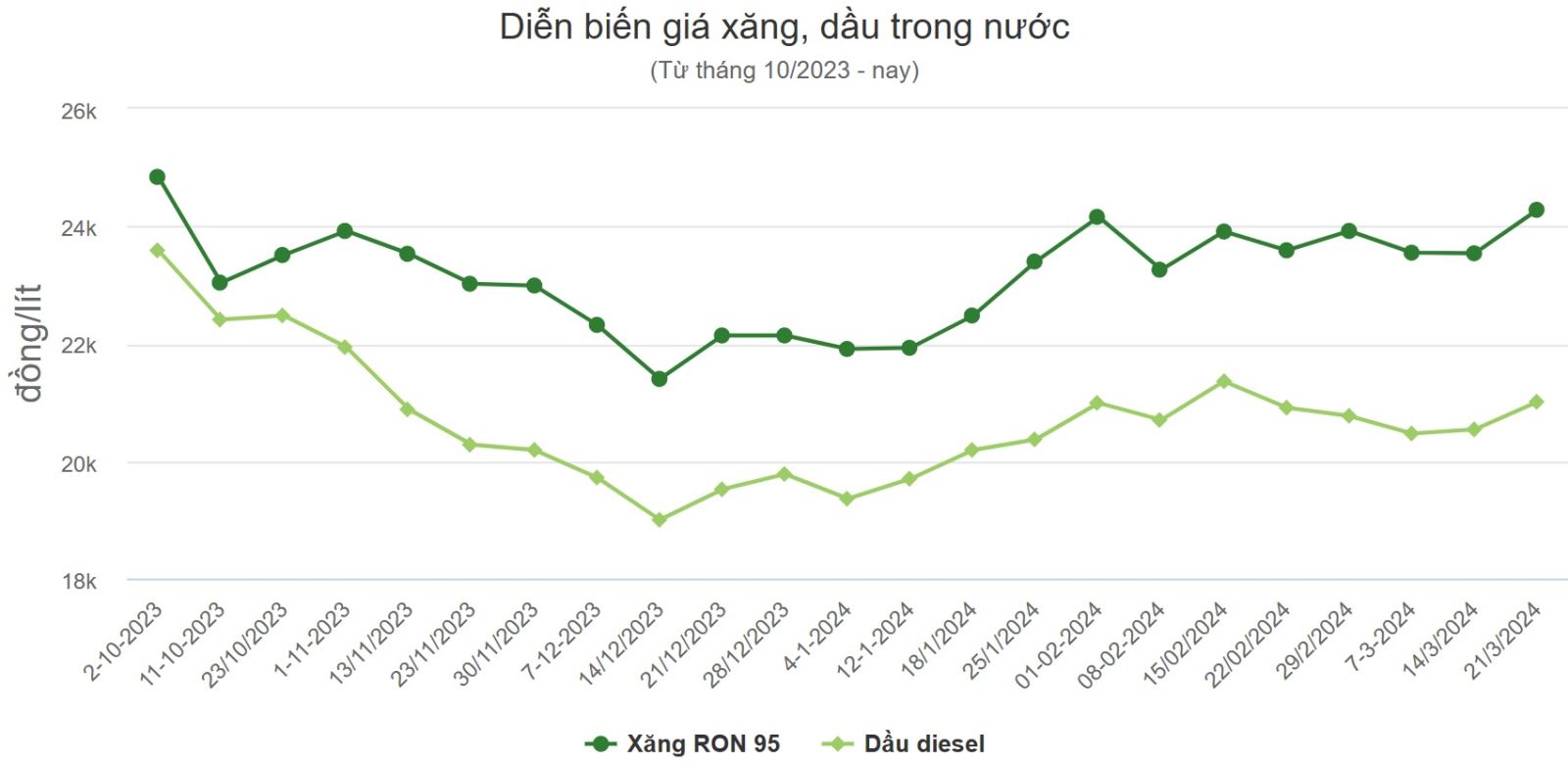 | Dầu diesel | 21.010 | + 470 |