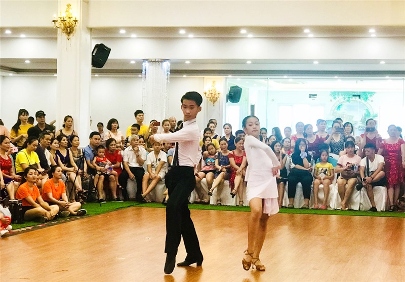 Phần thi của các vũ công tại giải khiêu vũ thể thao TP Uông Bí mở rộng lần thứ V năm 2020.