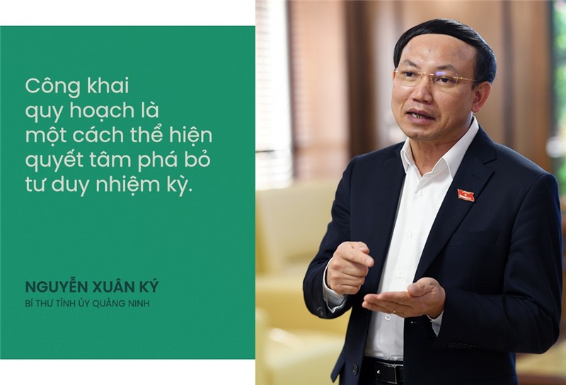 Chỉ vào quy hoạch tổng thể phát triển kinh tế xã hội, ông Nguyễn Xuân Ký, Bí thư tỉnh uỷ Quảng Ninh, khẳng định: “Công khai quy hoạch là một cách thể hiện quyết tâm phá bỏ tư duy nhiệm kỳ, chúng tôi công khai quy hoạch địa phương để người dân biết và giám sát. Quy hoạch đó sẽ được thực hiện từng bước, như một lời cam kết của chính quyền với người dân, dù ai làm lãnh đạo, dù một hay nhiều nhiệm kỳ cũng sẽ kiên trì thực hiện quy hoạch đó”.
