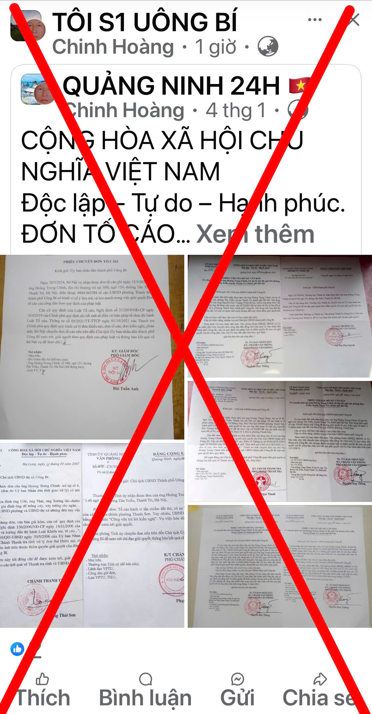 Trong thời gian qua, thành phố Uông Bí đã nhận được nhiều đơn thư khiếu nại, tố cáo từ ông Hoàng Trung Chinh, địa chỉ tại số 38B, ngõ 124, đường Tân Triều, huyện Thanh Trì, thành phố Hà Nội, liên quan đến tranh chấp đất đai tại phường Thanh Sơn. Dù vụ việc đã được các cơ quan chức năng giải quyết theo đúng trình tự, quy định của pháp luật, ông Chinh vẫn liên tiếp gửi đơn thư, đồng thời đăng tải thông tin lên mạng xã hội, gây dư luận trái chiều. Trước tình hình này, thành phố Uông Bí khẳng định rõ: mọi khiếu nại, tố cáo đều được giải quyết minh bạch, đúng quy định pháp luật; đồng thời kiên quyết xử lý các hành vi lợi dụng quyền khiếu nại, tố cáo để xuyên tạc, gây bất ổn xã hội.