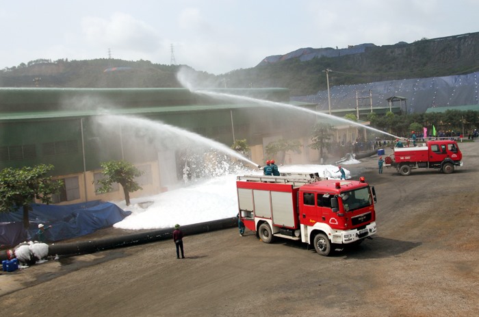 Diễn tập phương án phòng cháy, chữa cháy tại Công ty Than Hòn Gai.