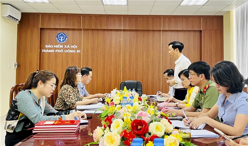 Đoàn giám sát tại chi bộ Bảo hiểm xã hội thành phố.