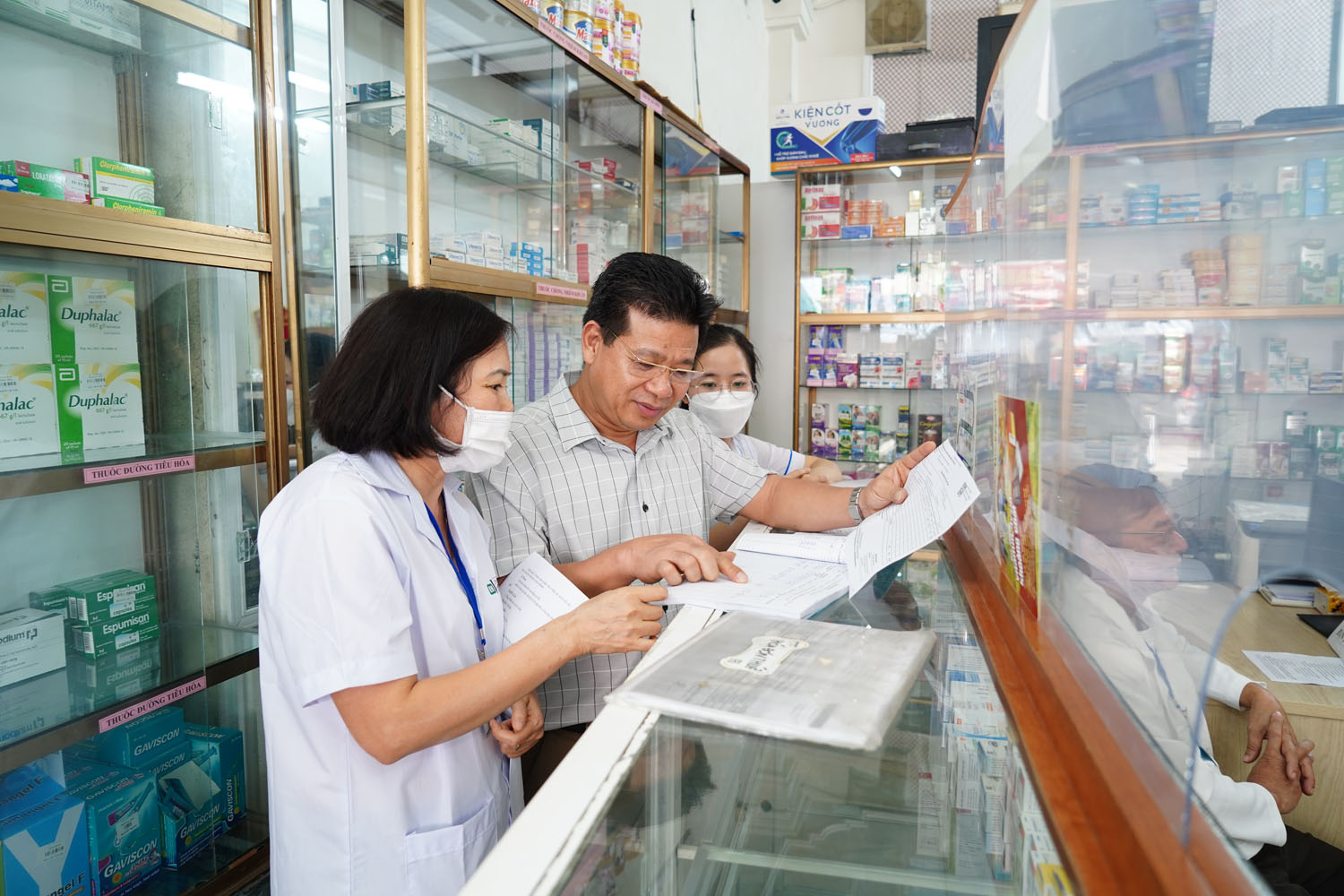 Đoàn giám sát làm việc tại Nhà thuốc Minh Kết.