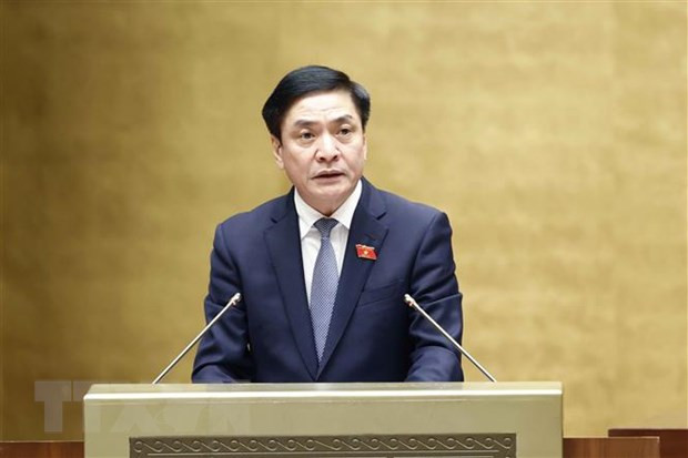 Ủy viên Ủy ban Thường vụ Quốc hội, Tổng Thư ký Quốc hội Bùi Văn Cường trình bày Tờ trình về dự kiến Chương trình giám sát của Quốc hội năm 2023. (Ảnh: Doãn Tấn/TTXVN)
