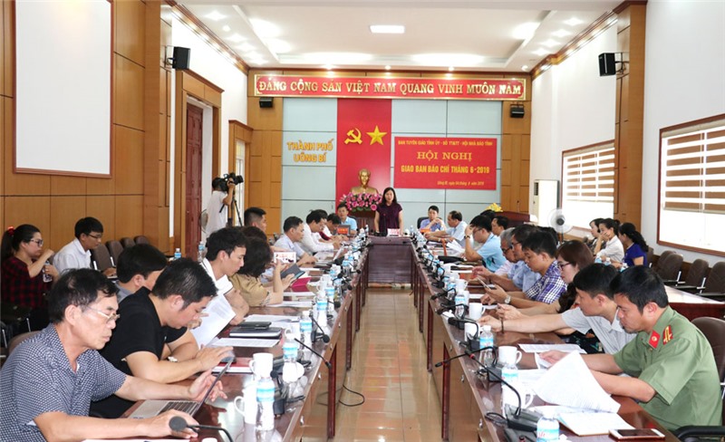 Chiều 4-6, tại TP Uông Bí, Ban Tuyên giáo Tỉnh ủy phối hợp cùng Sở Thông tin - Truyền thông, Hội Nhà báo tỉnh tổ chức Hội nghị giao ban báo chí tháng 6-2019. Đồng chí Trần Văn Lâm, Tỉnh ủy viên, Bí thư Thành ủy, Chủ tịch HĐND thành phố; đồng chí Nguyễn Mạnh Hà, Phó Bí thư Thành ủy, Chủ tịch UBND thành phố tới dự.