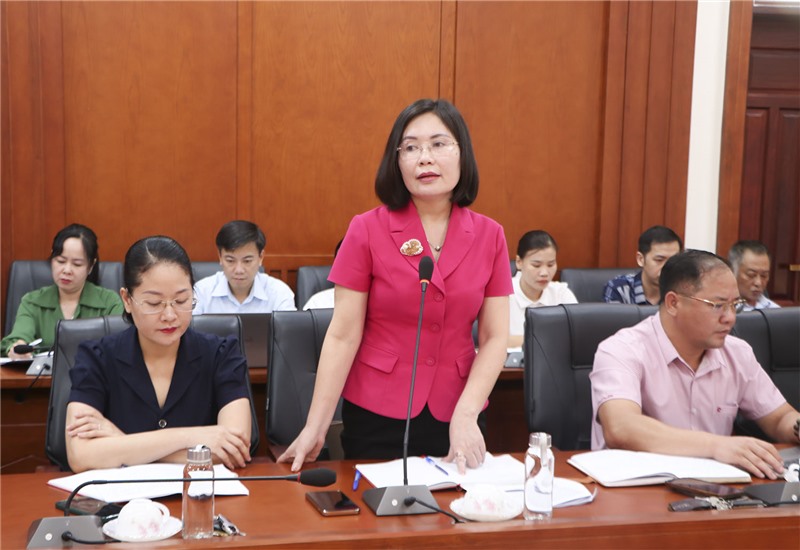 Đồng chí Vũ Thị Hồng Nhung - Bí thư Đảng bộ phường Quang Trung phát biểu tại giao ban.