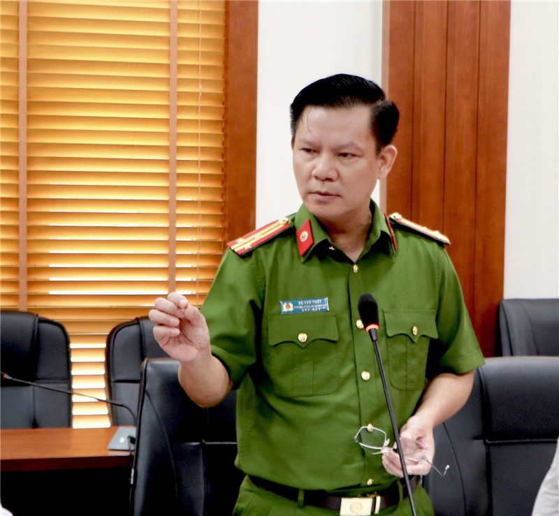 Đồng chí Đỗ Văn Thiết - Trưởng công an Thành phố phát biểu tại giao ban.