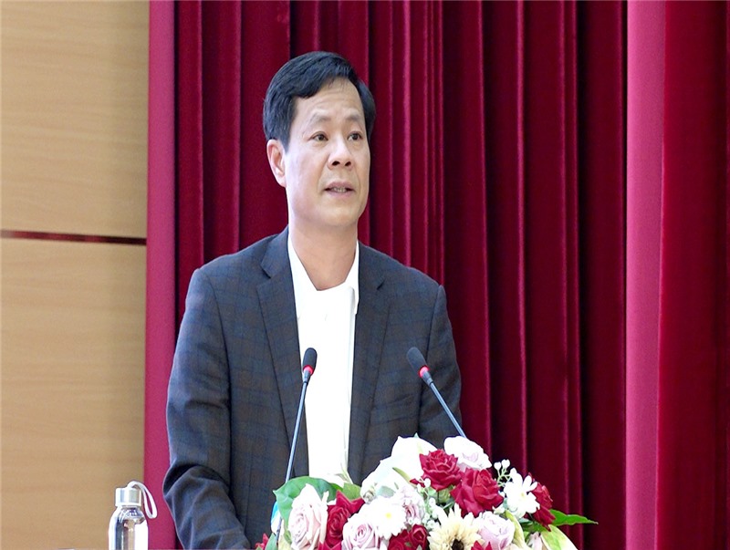 Đồng chí Nghiêm Xuân Cường, Tỉnh ủy viên, Bí thư Thành ủy Uông Bí phát biểu chỉ đạo hội nghị.