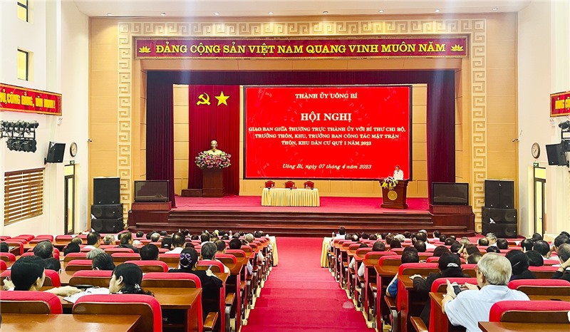 Ngày 7/4, Thành ủy Uông Bí tổ chức hội nghị giao ban giữa Thường trực Thành ủy với Bí thư chi bộ, Trưởng thôn, khu; Trưởng Ban công tác mặt trận thôn, khu dân cư quý I năm 2023. Đồng chí Nghiêm Xuân Cường, Tỉnh ủy viên, Bí thư Thành ủy, Chủ tịch HĐND thành phố dự, chỉ đạo hội nghị. Tham dự hội nghị có các đồng chí ủy viên Ban Thường vụ Thành uỷ; lãnh đạo HĐND, UBND, Uỷ ban MTTQ và các đoàn thể chính trị - xã hội thành phố; lãnh đạo các phòng, ban, ngành, đơn vị; cùng dự còn có 198 đồng chí Bí thư chi bộ, trưởng thôn, khu; trưởng Ban công tác mặt trận thôn, khu dân cư trên địa bàn.