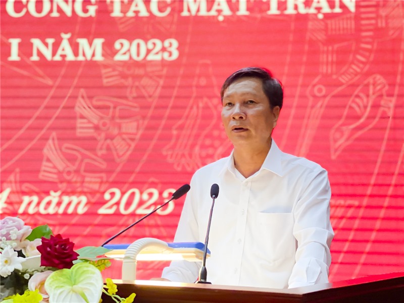 Đồng chí Đào Ngọc Sơn ủy, UV BTV, Trưởng ban Dân vận Thành ủy, Chủ tịch UB MTTQ thành phố phát biểu tại hội nghị.