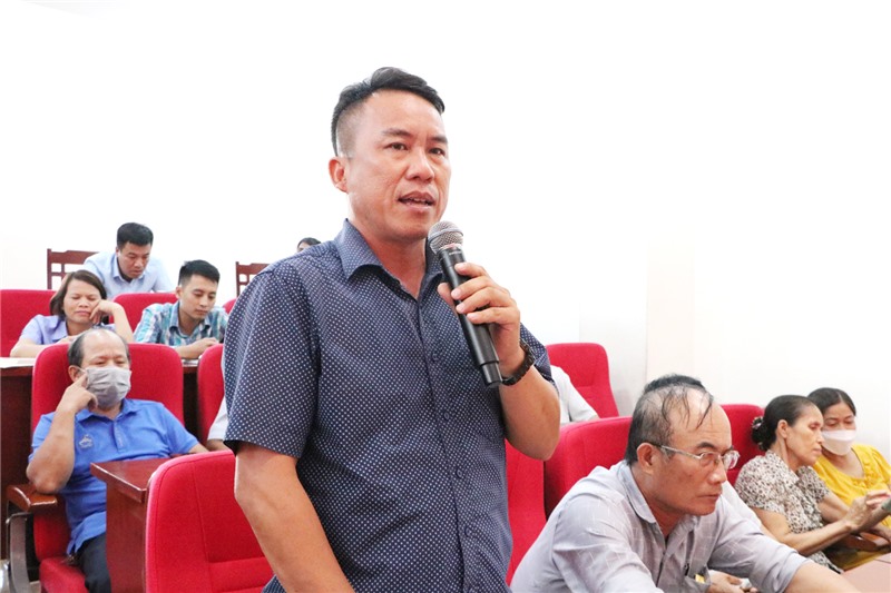 Lãnh đạo thôn, khu dân cư phát biểu ý kiến tại hội nghị.