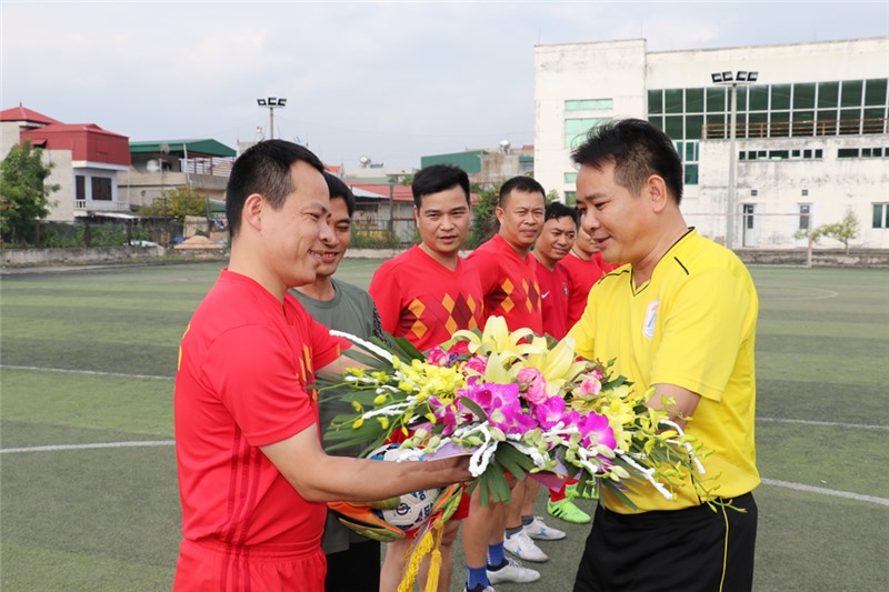 Đại diện BTC trận giao hữu tặng hoa CLB 7X TP Hạ Long.