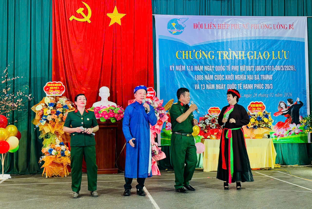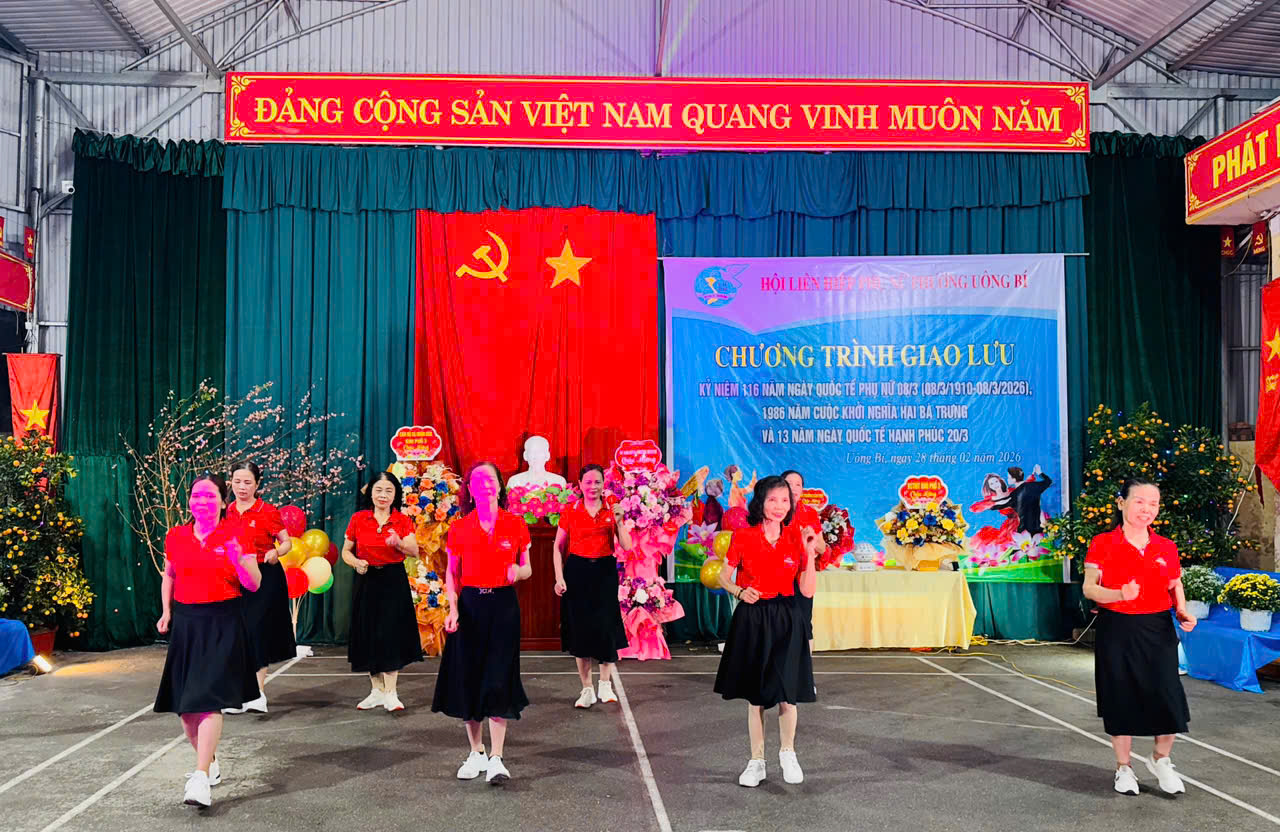 Tối 28/2, tại Nhà văn hoá khu Quang Trung 3, Hội Liên hiệp Phụ nữ phường Uông Bí long trọng tổ chức Chương trình giao lưu kỷ niệm 116 năm Ngày Quốc tế Phụ nữ 8/3; 1986 năm Cuộc khởi nghĩa Hai Bà Trưng và 13 năm Ngày Quốc tế Hạnh phúc 20/3. Dự chương trình có đồng chí Phạm Văn Sự, Phó Chủ tịch Ủy ban Mặt trận Tổ quốc, Chủ tịch Hội Nông dân phường Uông Bí; đồng chí Nguyễn Thị Mai Hạnh, Phó Chủ tịch Ủy ban MTTQ, Chủ tịch Hội Liên hiệp Phụ nữ phường.