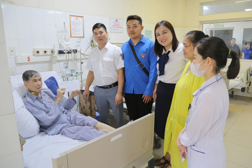 Tổ Công tác xã hội và Cảng vụ Hàng hải Quảng Ninh tặng quà cho bệnh nhân khó khăn tại khoa Tim mạch (Bệnh viện Đa khoa tỉnh), tháng 3/2025.