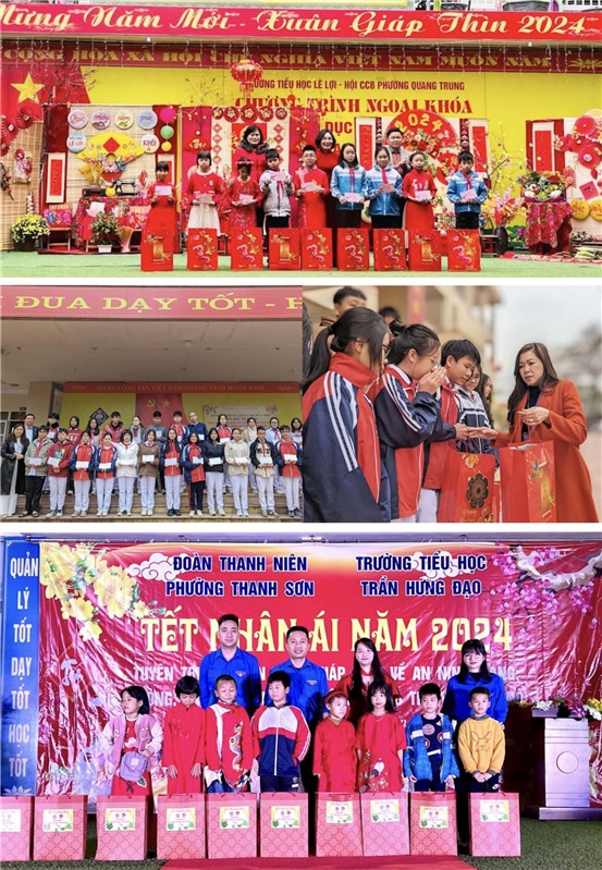 Để chia sẻ, động viên giúp các em học sinh đón đến đầm ấm, hạnh phúc, tại chương trình, các trường cũng tổ chức nhiều hoạt động ý nghĩa như; gói bánh chưng, phát động quyên góp ủng hộ học sinh có hoàn cảnh khó khăn vươn lên trong học tập, tặng quà học sinh có hoàn cảnh khó khăn…