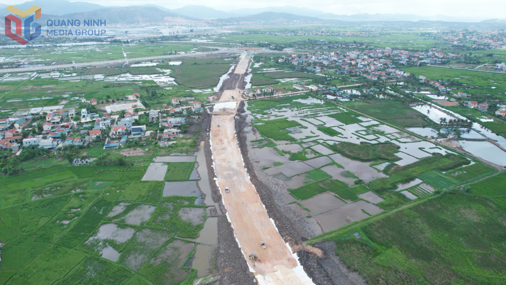 Tuyến đường ven sông nối cao tốc Hạ Long - Hải Phòng đến TP Đông Triều, đoạn nút giao Đầm Nhà Mạc đến đường tỉnh 338 đang tập trung thi công đắp đất.