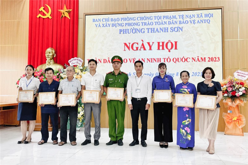 UBND phường Thanh Sơn (TP Uông Bí) biểu dương các điển hình tiêu biểu tại ngày hội Toàn dân bảo vệ an ninh Tổ quốc năm 2023. Ảnh: Hồng Hoàn (Trung tâm TT-VH Uông Bí)