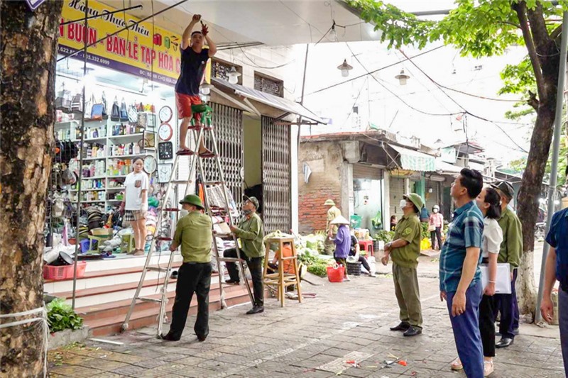 UBND phường Cẩm Trung (TP Cẩm Phả) ra quân lập lại trật tự đô thị xung quanh khu vực Chợ Trung tâm. Ảnh: Vũ Hiền (Trung tâm TT-VH Cẩm Phả)