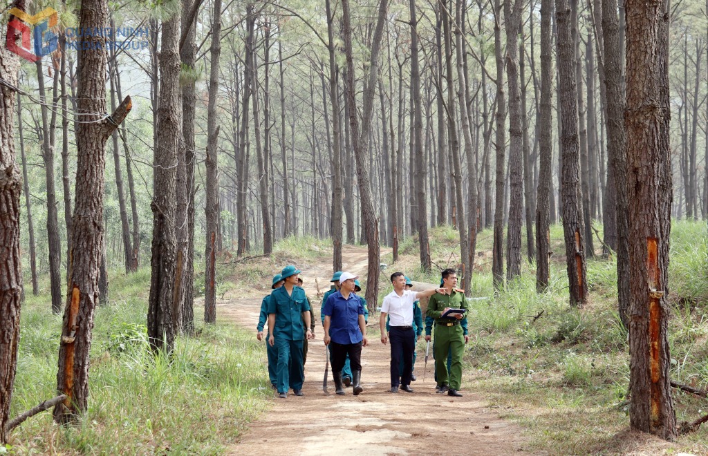 Thành viên các tổ chữa cháy, cứu nạn cứu hộ tình nguyện phường Thanh Sơn (TP Uông Bí) phối hợp tuần tra, kiểm soát khu vực rừng trọng điểm. Ảnh: Trúc Linh