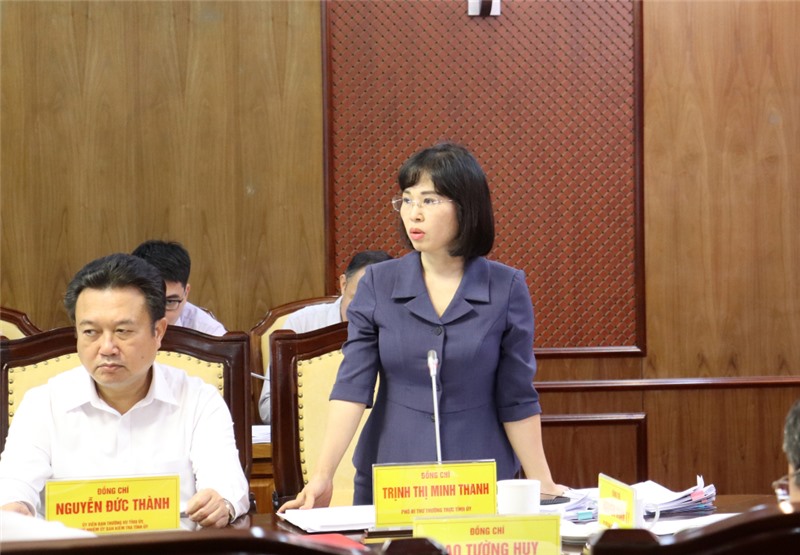 Đồng chí Trịnh Thị Minh Thanh, Phó Bí thư Thường trực Tỉnh ủy, phát biểu tại hội nghị.