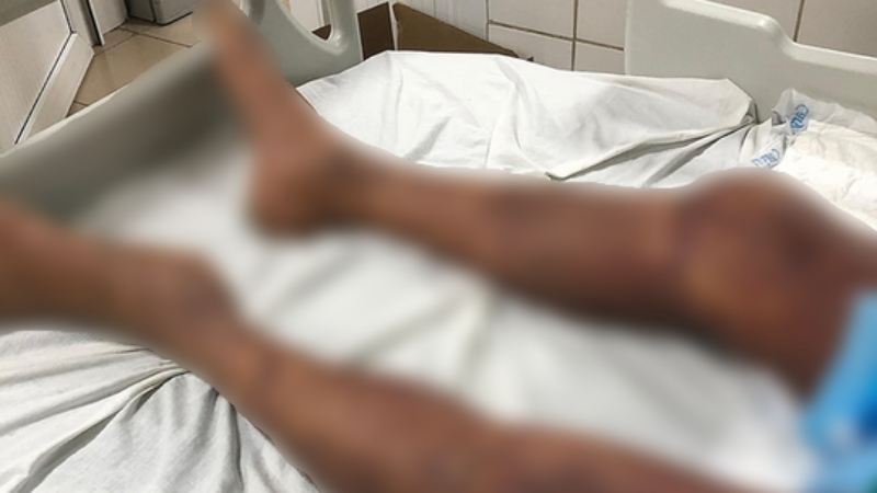 Một trường hợp toàn thân tím đen vì mắc liên cầu lợn. (Ảnh: Vietnam+)