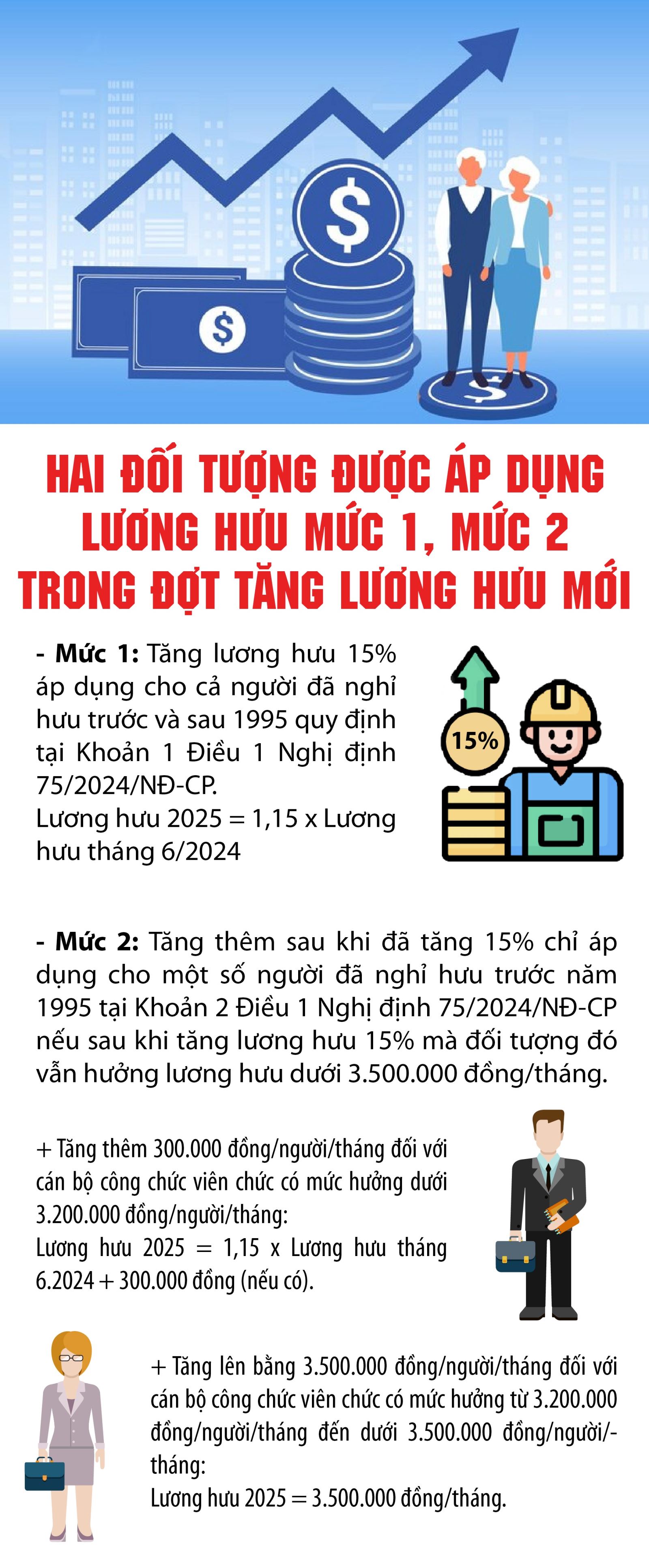 Hai đối tượng được áp dụng lương hưu mức 1, mức 2 trong đợt tăng mới