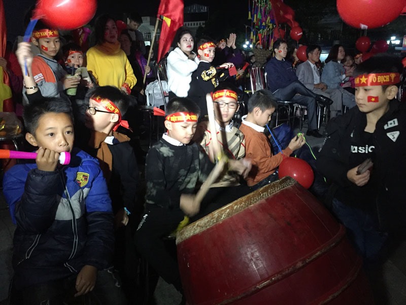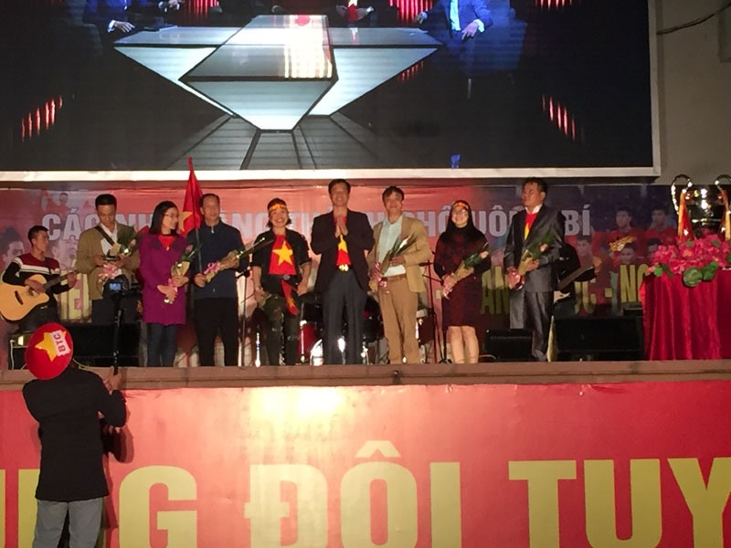 Người hâm mộ TP Uông Bí vỡ oà trong cảm xúc khi đội tuyển Việt Nam nâng cao chiếc cúp vô địch.
