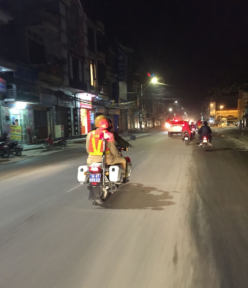 Lực lượng công an đồng hành, đảm bảo trật tự an toàn giao thông.