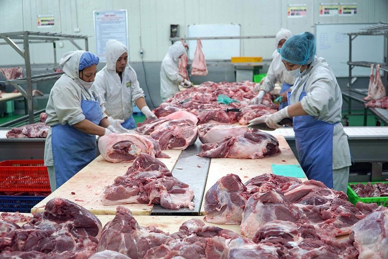 Chế biến thịt lợn tại Công ty thực phẩm Vinh Anh, huyện Thường Tín, Hà Nội. (Ảnh MINH HÀ)