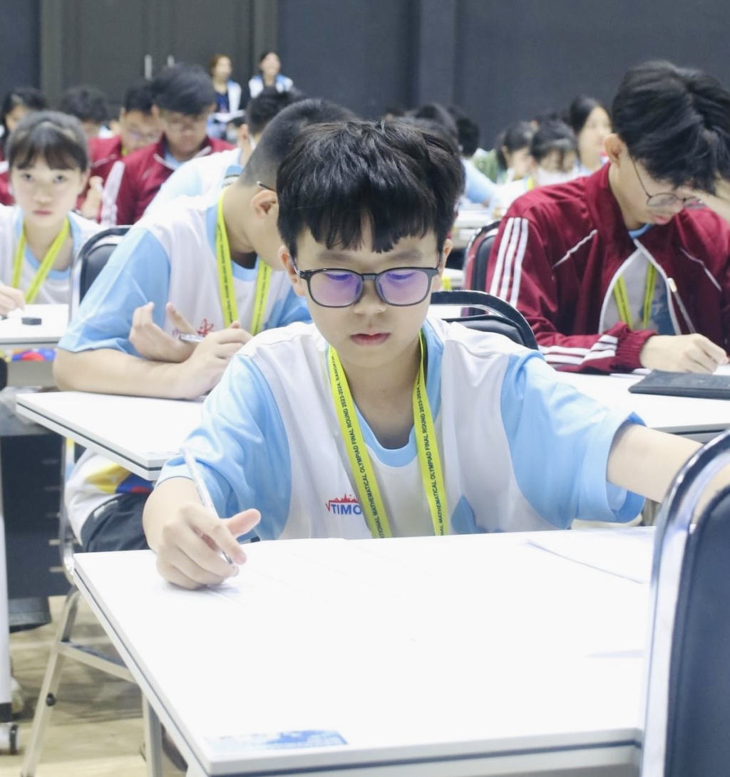 Năm học 2023 - 2024 là lần đầu tiên em Nguyễn Viết Trọng, học sinh lớp SH 4.3, trường Tiểu học và THCS Quốc tế Stephen Hawking tham gia kì thi Olympic toán học quốc tế TIMO tổ chức tại Bangkok, Thái Lan. Lần đầu tiên “mang chuông đi đánh xứ người” nhưng cậu học sinh với vóc dáng nhỏ bé đã lập thành tích đầy tự hào với chiếc Huy chương vàng tại vòng chung kết quốc tế. Viết Trọng chia sẻ: “Lần đầu tiên đi thi tại nước ngoài em cảm thấy rất hồi hộp xen lẫn niềm vui và tự hào. Để được tham gia vòng thi chung kết quốc tế, dưới sự hướng dẫn tận tình của các thầy cô tại trường, em và các bạn đã rất nỗ lực để vượt qua các vòng thi loại, vòng thi chung kết quốc gia, vòng loại quốc tế. Khi tên mình được xướng lên trên sân khấu, em vô cùng bất ngờ. Giải thưởng này là sự động viên rất lớn, là động lực để em cố gắng hơn nữa trong những năm học tới và những lần thi tiếp theo”.