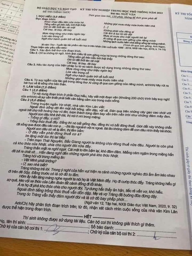Hình ảnh đề môn Ngữ văn thi tốt nghiệp THPT năm 2023 lan truyền trên mạng xã hội vào khoảng 8 giờ ngày 28/6, tức chỉ gần 30 phút sau khi thí sinh bắt đầu làm bài.