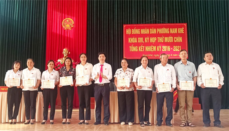 Nhân dịp này, UBND phường Nam Khê đã khen thưởng cho 2 tập thể, 10 cá nhân có thành tích xuất sắc trong hoạt động của HĐND phường nhiệm kỳ 2016-2021.