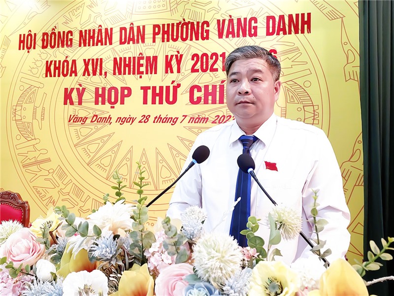 Chiều ngày 28/7, HĐND phường Vàng Danh khóa XVI, nhiệm kỳ 2021-2026 đã tổ chức kỳ họp thứ 9 - kỳ họp thường lệ giữa năm 2023. Dự kỳ họp có các đồng chí: Trần Phi Long, Trưởng Ban Pháp chế HĐND thành phố; Phan Minh Toàn, Thành ủy viên, Bí thư Đảng ủy, Tổ trưởng tổ Đại biểu HĐND thành phố ứng cử trên địa bàn; Đại đức Thích Trúc Tử Kiến, Ủy viên Ban Trị sự Giáo hội Phật giáo Việt Nam tỉnh Quảng Ninh, Phó Trưởng Ban Trị sự kiêm Chánh thư ký Ban Trị sự Giáo hội Phật giáo Việt Nam thành phố Uông Bí, đại biểu HĐND thành phố ứng cử tại phường Vàng Danh.