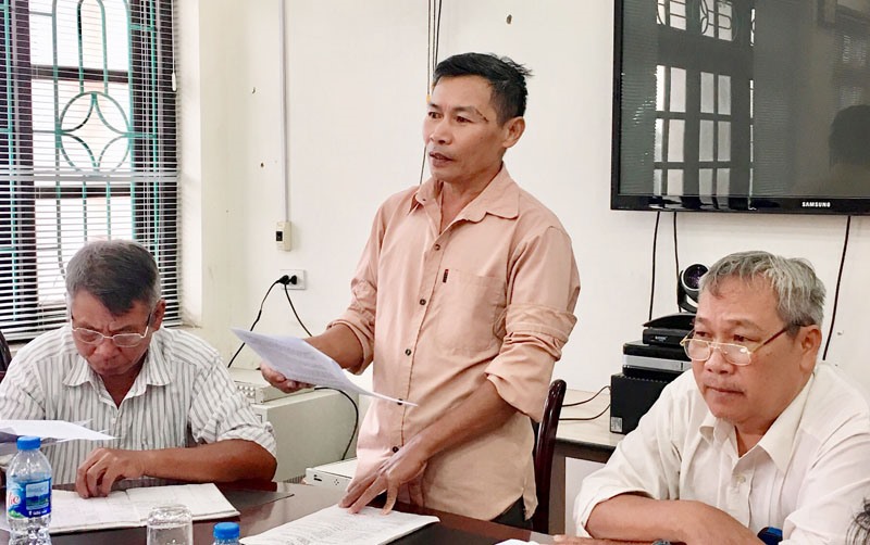 Đại diện khu dân cư có nghĩa trang phát biểu ý kiến tại buổi làm việc.