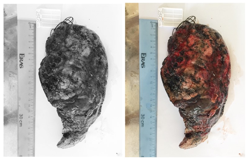 Hình ảnh đại thể mô bệnh phẩm phổi làm xét nghiệm giải phẫu bệnh.