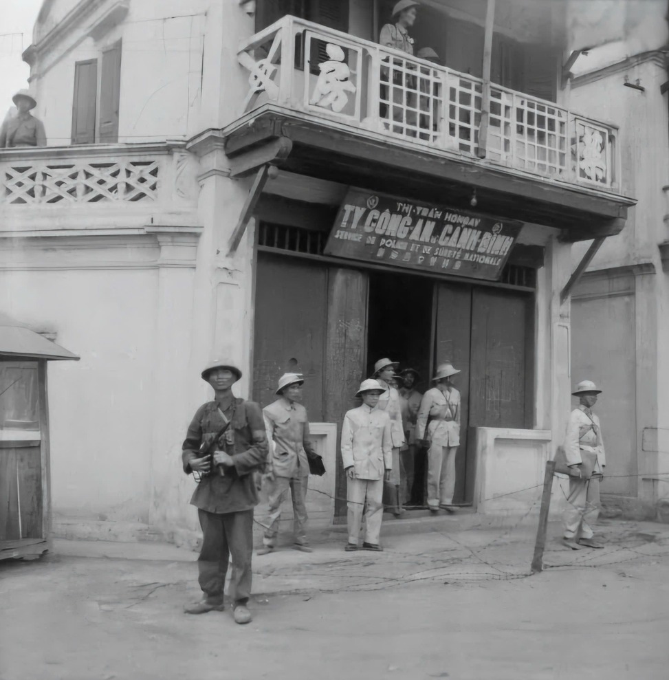 Bộ đội ta và các chiến sĩ an ninh tiếp quản Ty Công an - Cảnh binh của địch ở Hòn Gai. Nguồn: Trung tâm lưu trữ và sản xuất nghe nhìn Bộ Quốc phòng Pháp