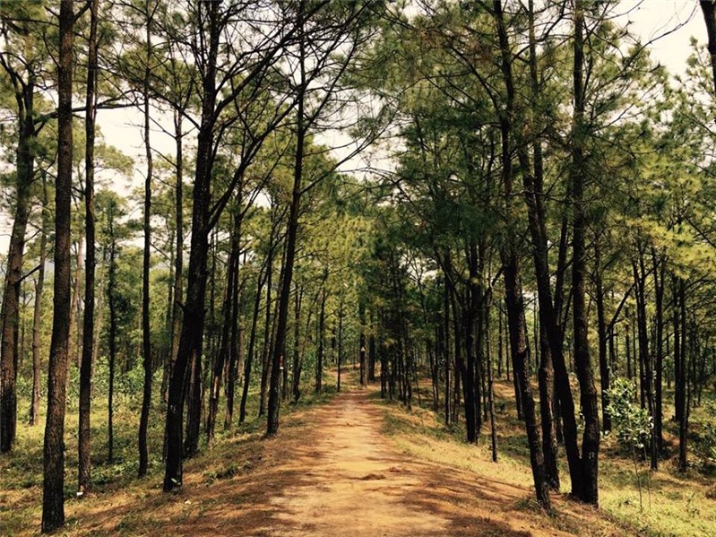 Xung quanh hồ là màu xanh trải dài của những rặng thông mã vỹ.
