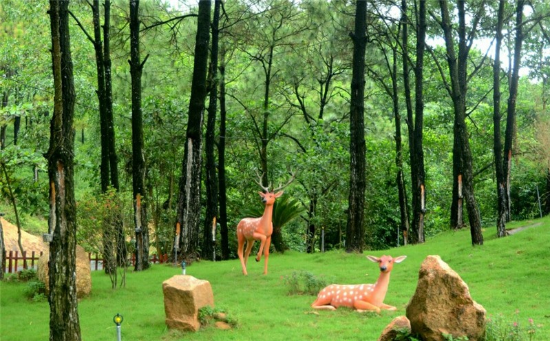 Ngay từ con đường nhỏ đi vào du khách như lạc vào một không gian hoàn toàn khác với thành phố ồn ào, náo nhiệt. Ấn tượng đầu tiên khi đến nơi đây là một màu xanh mát mắt của những rặng thông mã vỹ trải dài hai bên đường. Khung cảnh yên bình, xanh mát của hồ Yên Trung dần hiện ra. Hồ rộng, mặt nước phẳng lặng, xanh mát, giữa hồ là những đảo đất nhỏ được phủ cây xanh khiến bạn như có cảm giác đang lạc vào một không gian đầy mê hoặc.