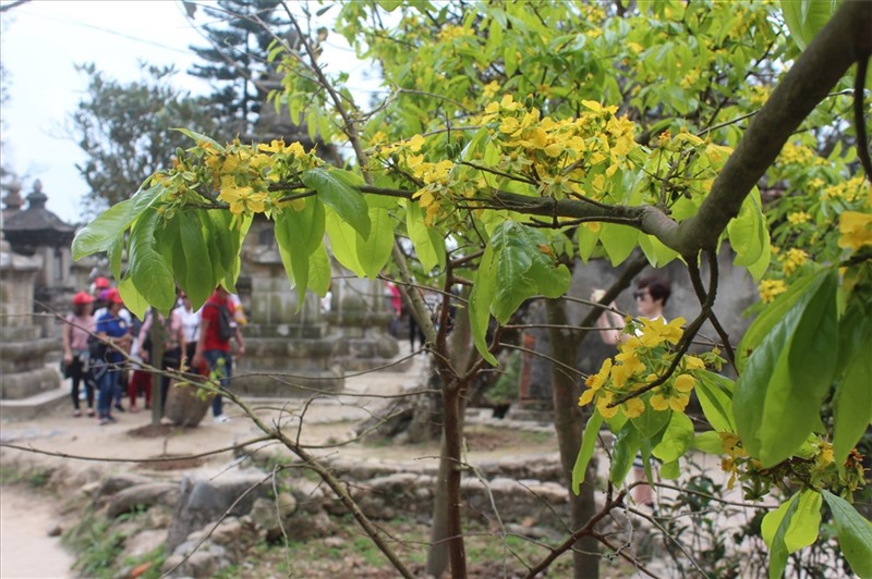 Mai vàng Yên Tử được trồng tại khu vực chùa Hoa Hiên cũng bắt đầu trổ hoa.