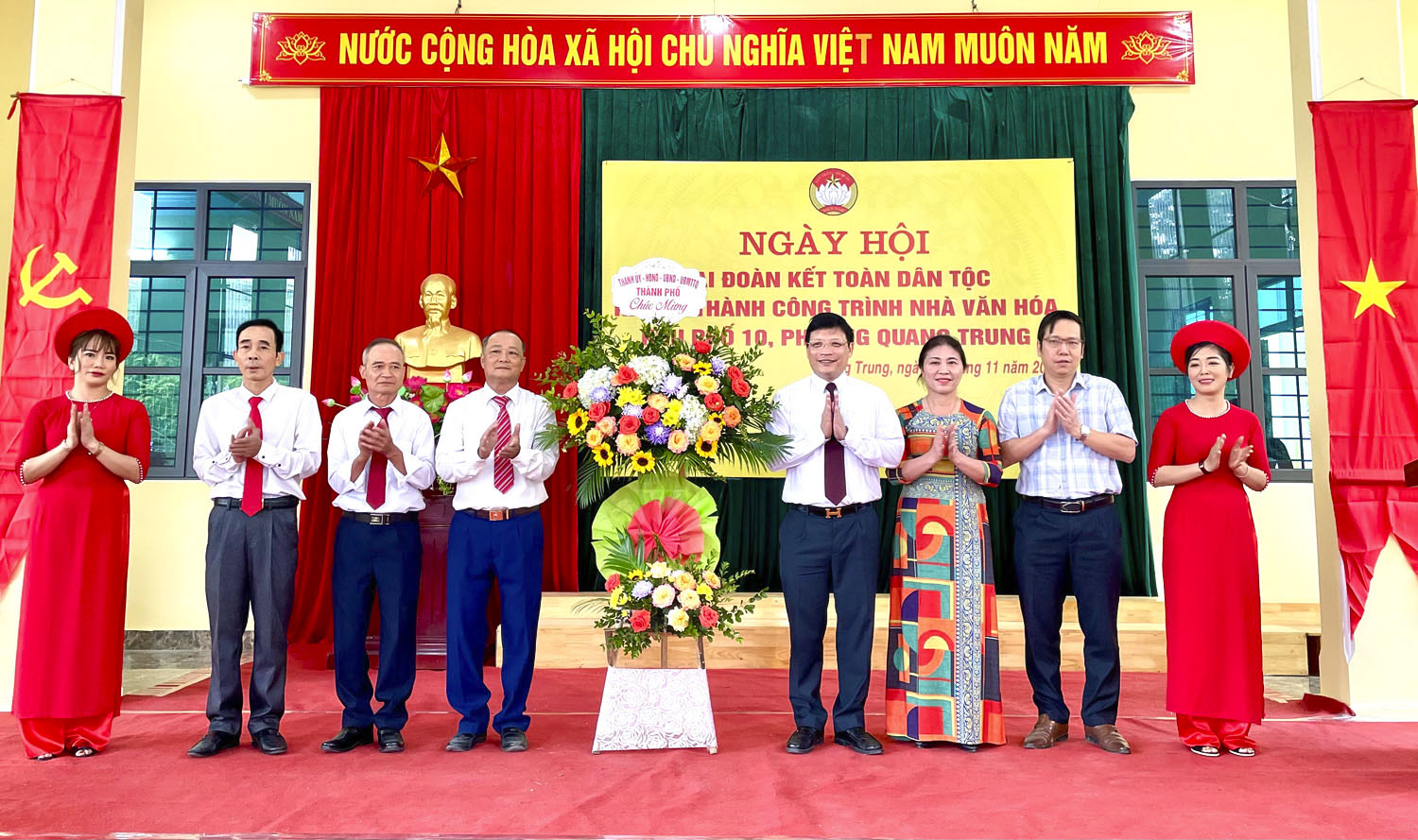 Trong chương trình, đại biểu đã cắt băng khánh thành Nhà văn hóa khu 10, phường Quang Trung. Công trình bao gồm nhà văn hóa trị giá trên 2,9 tỷ đồng và mái tôn trị giá gần 200 triệu đồng. Các tập thể, gia đình và cá nhân có thành tích xuất sắc trong xây dựng cộng đồng dân cư; các Tổ liên gia tự quản phòng, chống dịch Covid-19 đã được biểu dương, khen thưởng. Khu 10, phường Quang Trung cũng ra mắt mô hình “Vận động nhân dân đoàn kết phát triển kinh tế vươn lên làm giàu chính đáng”; đồng thời phát động cộng đồng dân cư hưởng ứng thi đua góp phần hoàn thành mục tiêu, nhiệm vụ của khu dân cư, của phường Quang Trung năm 2023.