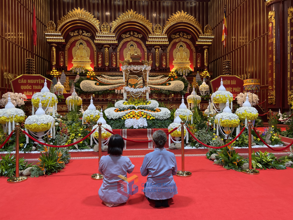 Chiều 24/5, tại Cung Trúc Lâm Yên Tử không khí khẩn trương nhưng trang béo bao trùm khi các công đoạn chuẩn bị cơ bản hoàn tất.
