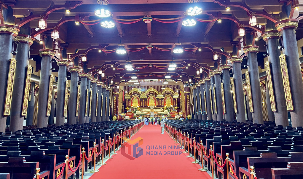 Cung Trúc Lâm là công trình bản đồ tuyệt nhất trong tổng thể Trung tâm văn hóa Trúc Lâm Yên Tử với sức chứa khoảng 7.000 chỗ ngồi.