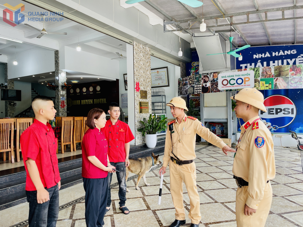 Cán bộ Đội CSGT đường bộ số 1 đề xuất các cơ sở kinh doanh dịch vụ trong khu vực xã hội Thượng Yên Công ty chấp hành tốt các quy định về trật tự an ninh, an toàn giao thông.
