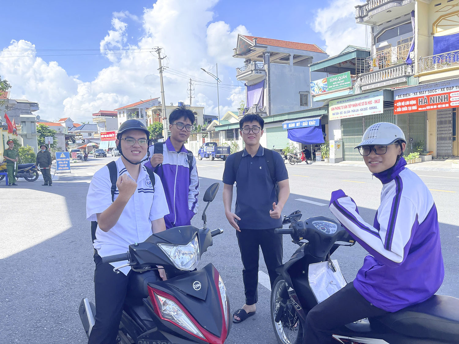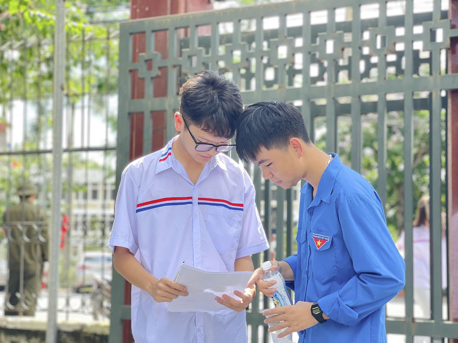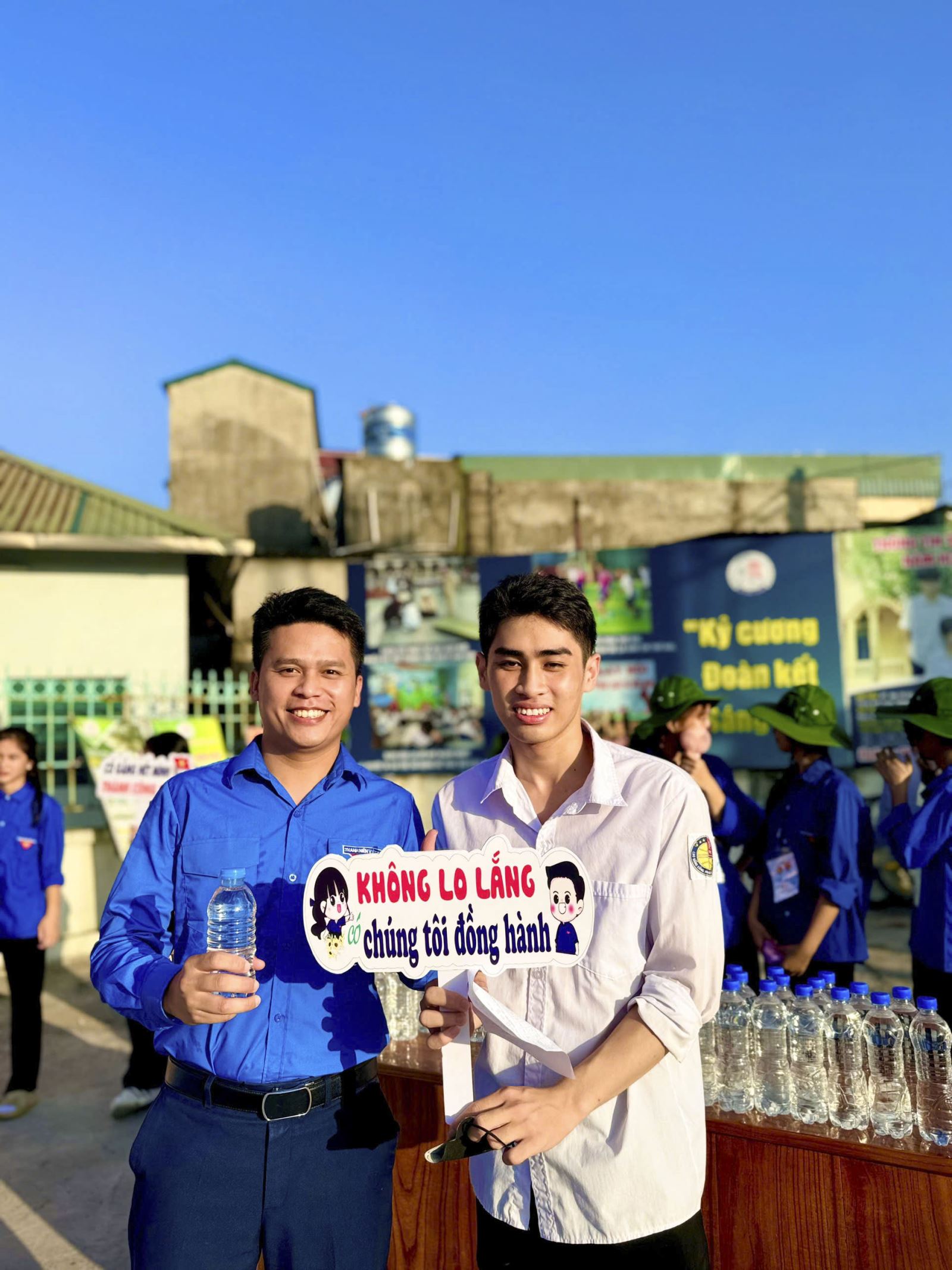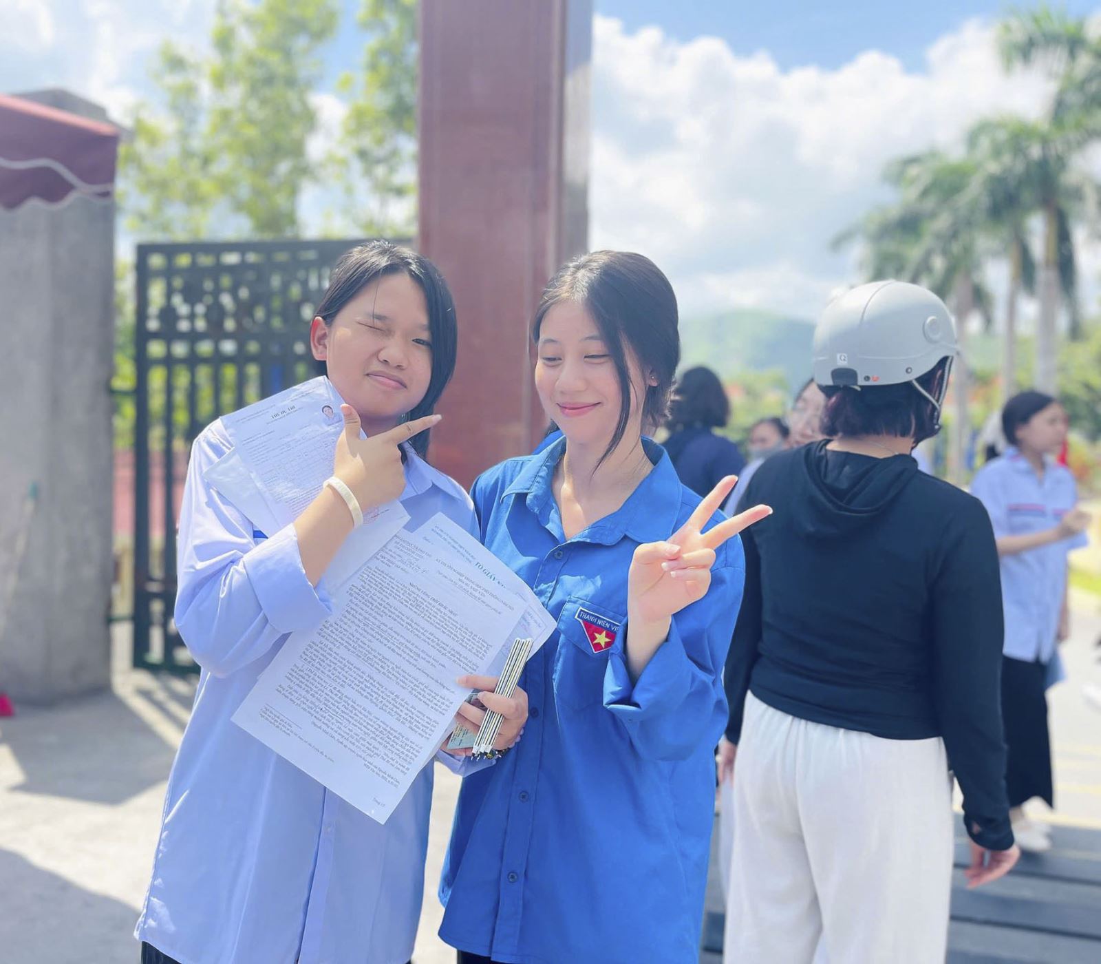 Lực lượng đoàn viên thanh niên tình nguyện hỗ trợ thí sinh tại các điểm thi.