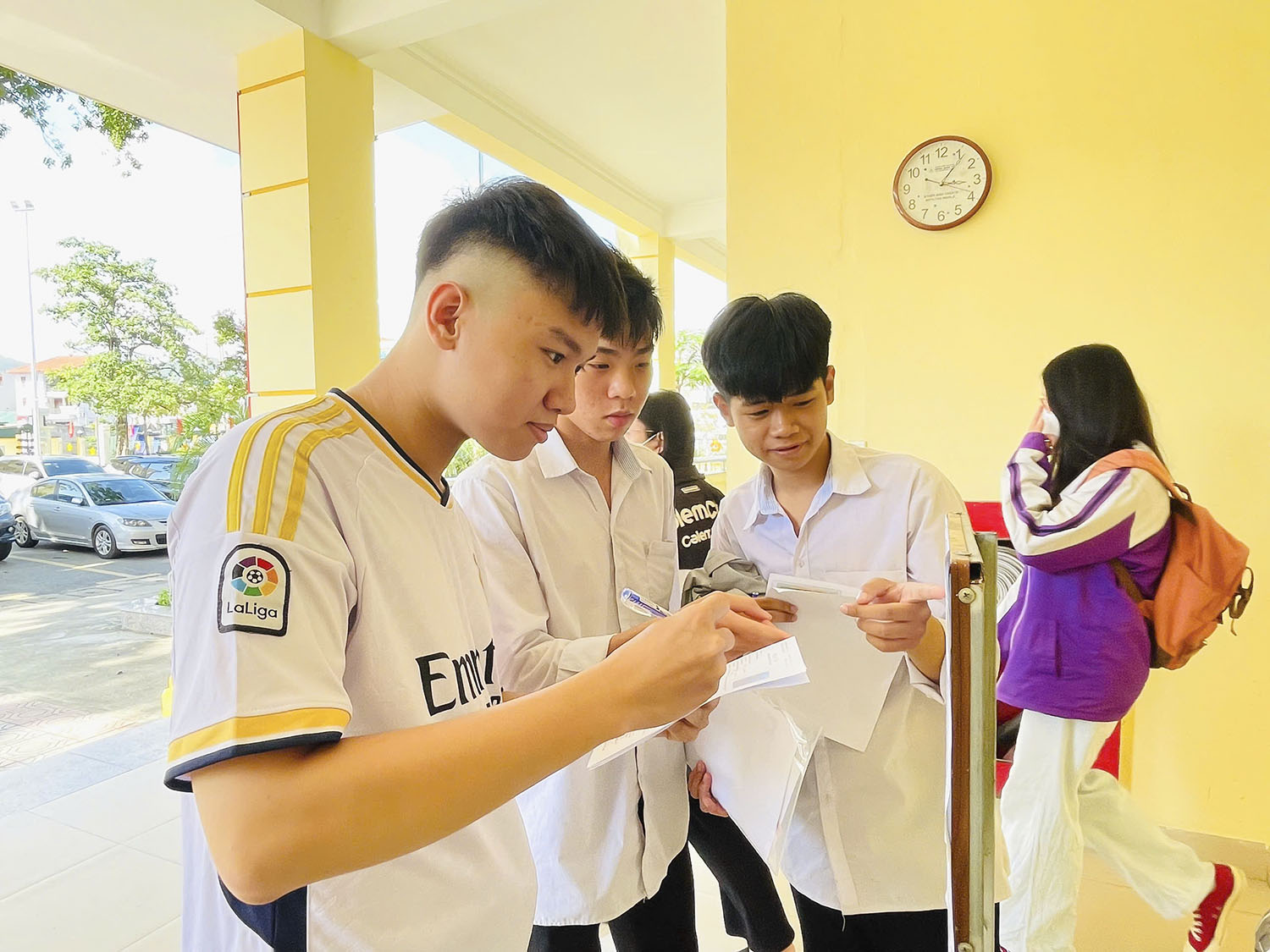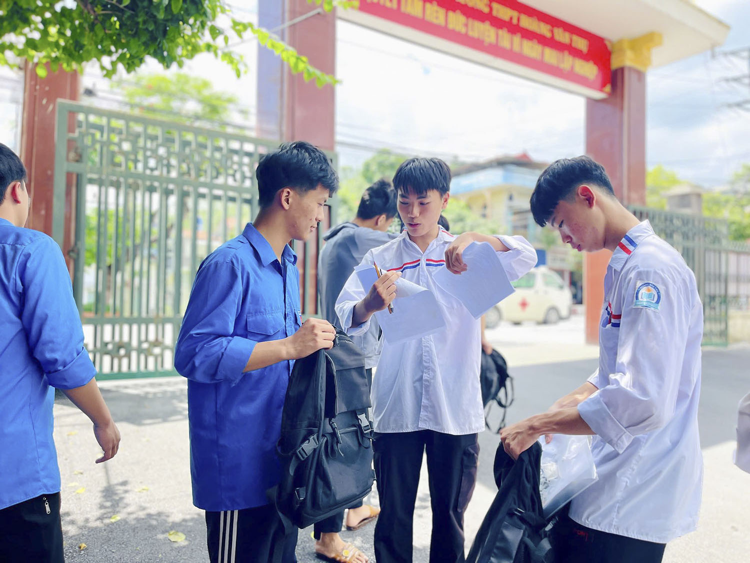 Quang cảnh tại điểm thi Trường THPT Hoàng Văn Thụ.